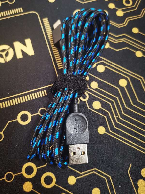 藍黑相間的編織線非常有拯救者的風格,插拔處下凹的小細節讓我們的大拇指能夠更好的用力,這是一個很棒的小細節。