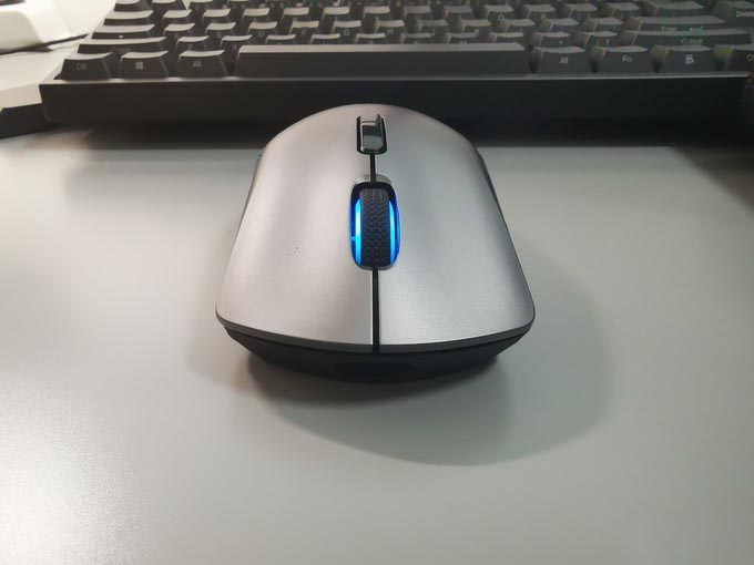 鼠標整體采用對稱設計,在滾輪處與尾部均有RGB燈光。