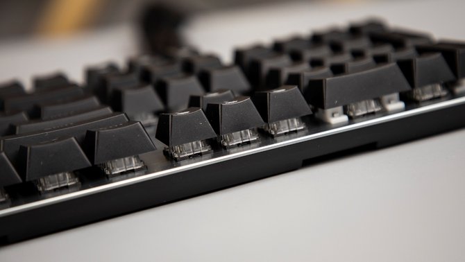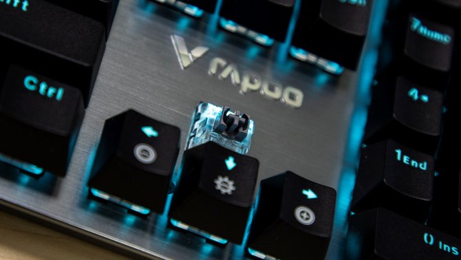 軸體方面的話,雷柏這款機械鍵盤采用了雷柏自主研發的銀軸,這款軸的的實際使用感受和我們常見的Cherry青軸比較像,段落感明顯,咔噠咔噠的聲音也會立刻讓人知道這是一款機械鍵盤。
