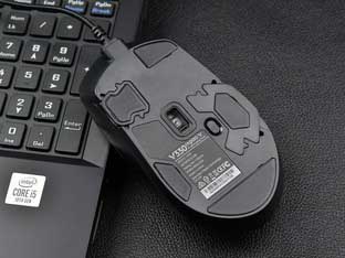 鼠標底部則擁有多片小面積腳貼,提供穩定順暢的滑行體驗。其中左右各有一片腳貼可以拆卸并組裝成側裙,并給手指提供支撐。