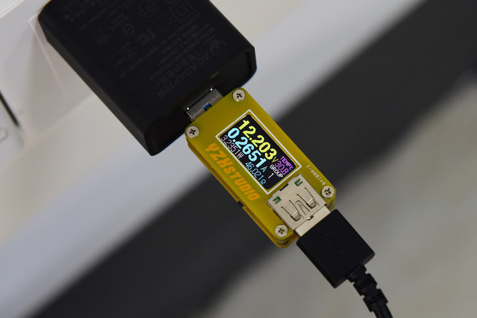 使用ChargePlay Base無線充電座單獨為HyperX 標槍RGB游戲鼠標充電時,功率為12V 0.26A 3.2W左右,由于電池容量并不大,所以這個充電功率和有線充電已經很接近了。