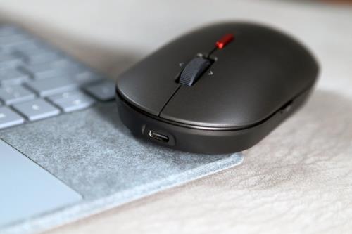 當鼠標與電腦連接之后,在商標上會亮起藍色的指示燈。小米小愛鼠標支持藍牙以及USB接收器兩種連接方式,可以實現連接兩臺設備,只需要通過長按鼠標的鼠標左鍵和右鍵3秒即可在兩種連接方式之間進行切換,對于同時需要使用兩臺設備的用戶來說,一個小米小愛鼠標就可以同時滿足兩臺設備的需求。