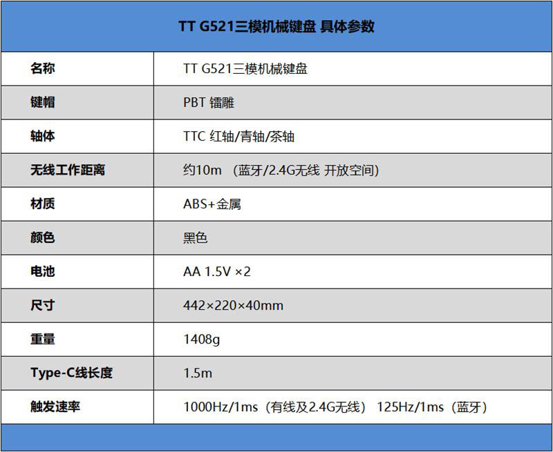 接下來,就一起來體驗一下這款TT 飛行家G521三模機械鍵盤,來看看國產TTC軸與Cherry MX軸體有何不同?它無線連接無縫切換的體驗,尤其是2.4G無線下的高回報率是否依舊。