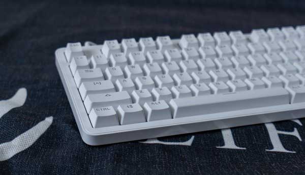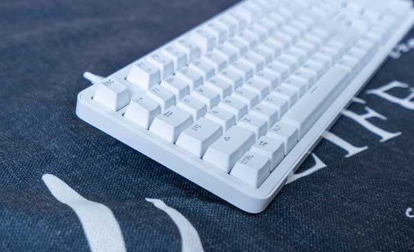 鍵盤鍵帽采用常見的雙色注塑工藝,ABS材質能夠帶來更好的透光效果,還能避免由于長時間使用導致的字符磨損問題。鍵盤表面使用磨砂工藝處理,手感細膩、舒適;拋光工藝的側邊增強整體的質感。但純白配色和ABS材質,在使用多年的情況下可能有發黃、打油的問題。部分字符采用開口字符,但重新調整的字母形態依然有不俗的觀感。