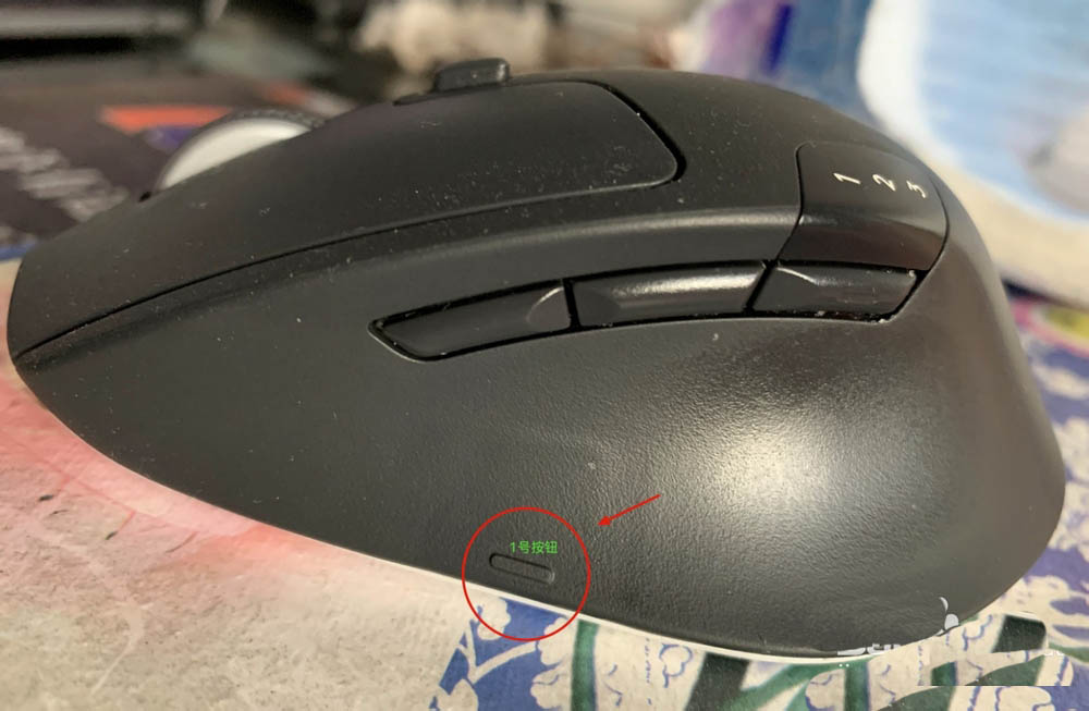 6、現在,我們來看如何設置自定義功能鍵。首先,第一個按鈕①,這個是手勢按鈕,按住他可以進行上下左右移動,代替一些快捷功能。圖片中是鼠標的實際按鈕所在位置。