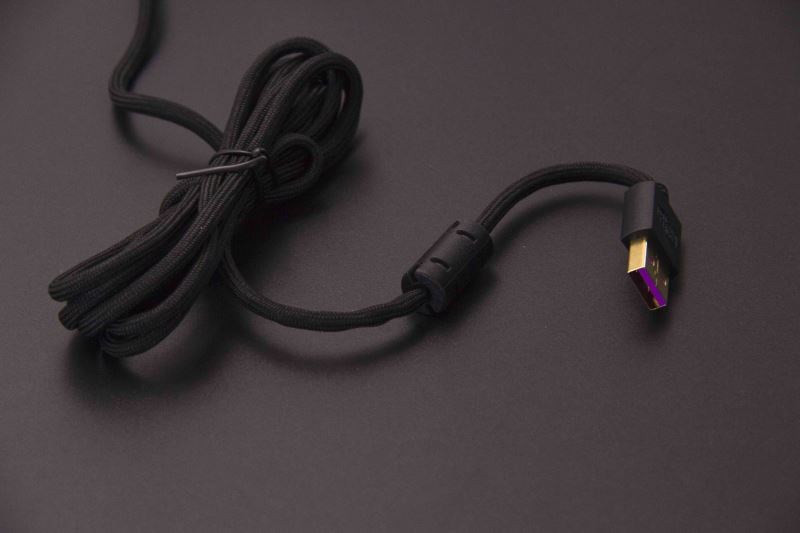 天狼星的線材也非常特別,材質很柔軟。咨詢了一下官方了解到這個線材叫做UltraWeave技術,使得鼠標線材能達到很高的柔軟度的同時能保證鼠標線的堅韌度與耐用度。超軟的線材能讓鼠標能擺脫因線材的張力帶來的在各方向移動中手感不一直的困擾,讓鼠標在各個方向的移動中能保持手感一致。并且這跟線長1.8米,要是機箱擺在地上也不用擔心鼠標線不夠長。