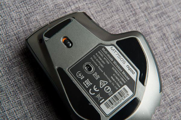 雷柏MT750S的電源開關位于鼠標底部,直接撥開即可開機。