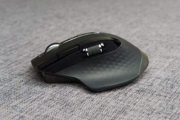 再來看看鼠標本體,黑灰配色,顯得非常有檔次,同時左側采用了棱格紋理的大側翼,提升了使用的舒適度。