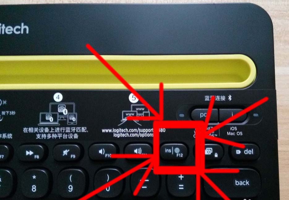 2、K480鍵盤右上角的F12鍵的鍵帽上,印有一個地球圖標,是不是很眼熟了呢?在iPad、iPhone上切換輸入法的時候,就是點擊鍵盤區的地球圖標的呀!