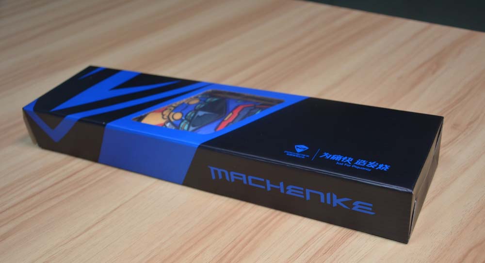 1、首先這款鼠標套餐包裝盒外觀,黑色底色配上藍色圖騰,看著比較炫酷。