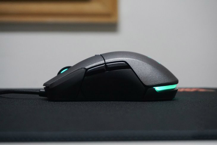 這款鼠標還針對右手進行了人體工學設計,多種不同的抓握方式都較為舒適,大拇指也能比較自然地放在側邊。