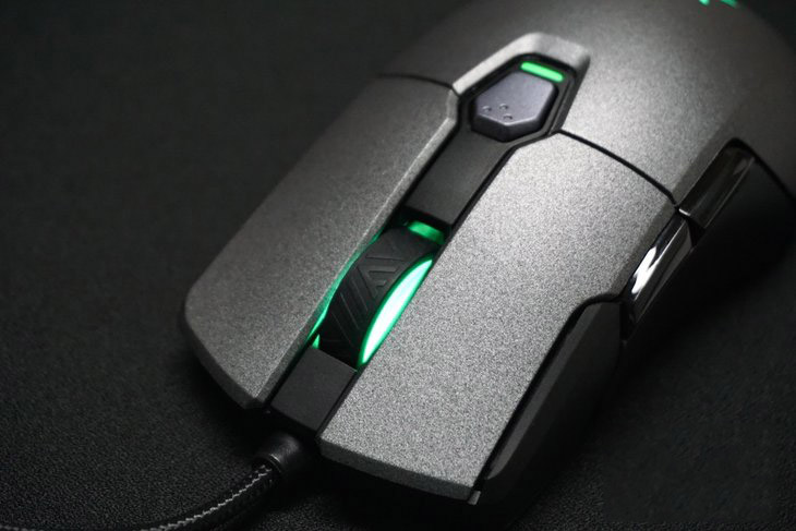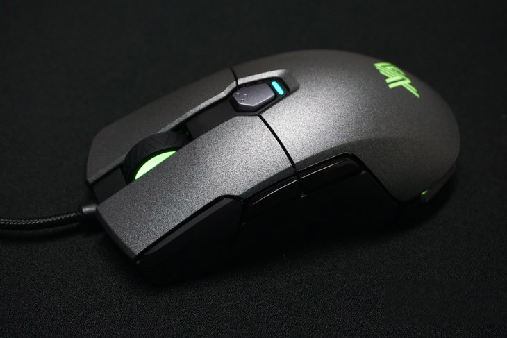 鼠標的左右按鍵和后蓋均采用了防汗類膚質涂層,觸感舒適,擁有一定的阻尼感,不至于太滑。