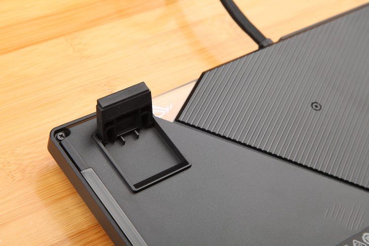鍵盤底部的撐腳可以向后撐起,一段式的設計對于鍵盤的使用來講有一定的改善,對于有需求的玩家來說可以更舒適的使用鍵盤。