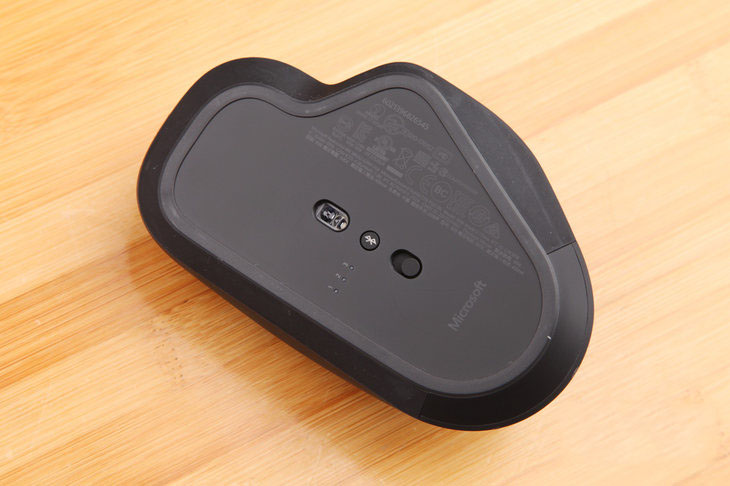從鼠標正面我們可以看到,這款鼠標的整體是一款較大體積的產品,產品外觀風格也是一貫的簡潔風,黑色的鼠標機身、銀色的按鍵以及白色的微軟標志,除此之外沒有任何冗余的東西。