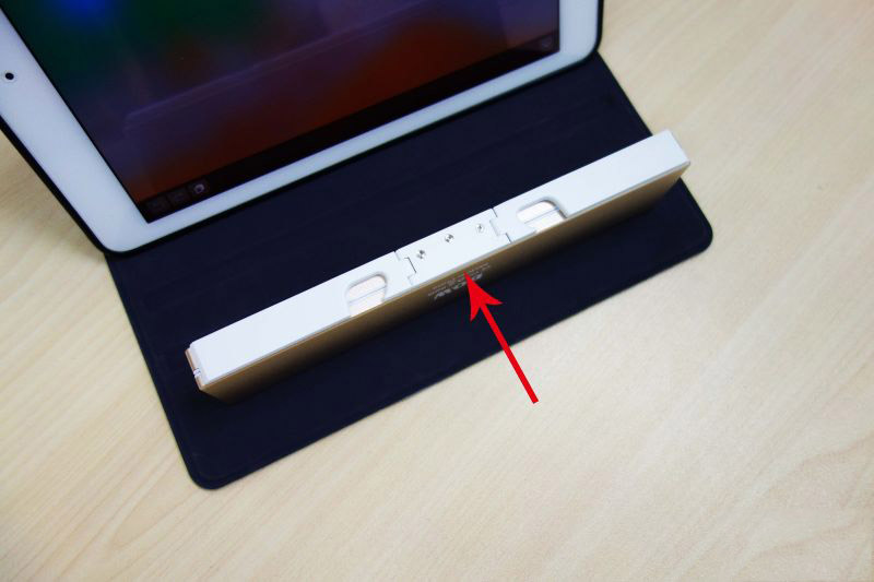 當兩個隱藏式磁吸支架收起來的時候,我們可以看到在鍵盤的頂部航世使用了三枚金屬鉚釘固定了兩個隱藏式磁吸支架的連接部位,這對于我們后續多次反復的打開閉合隱藏式磁吸支架的牢固性有了保障。