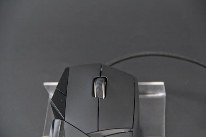 VT300采用左右鍵分離設計,左鍵左側還有兩顆快捷按鍵,體積很大,貫穿了正面和側面。采用亮塑料材質以視區別。這兩顆按鍵可以設置成DPI加減按鍵,隨時隨地調整鼠標的移動速度。鼠標滾輪上使用了類似輪胎紋的橡膠,兩邊使用了兩圈亮金屬點綴,阻尼感清晰。