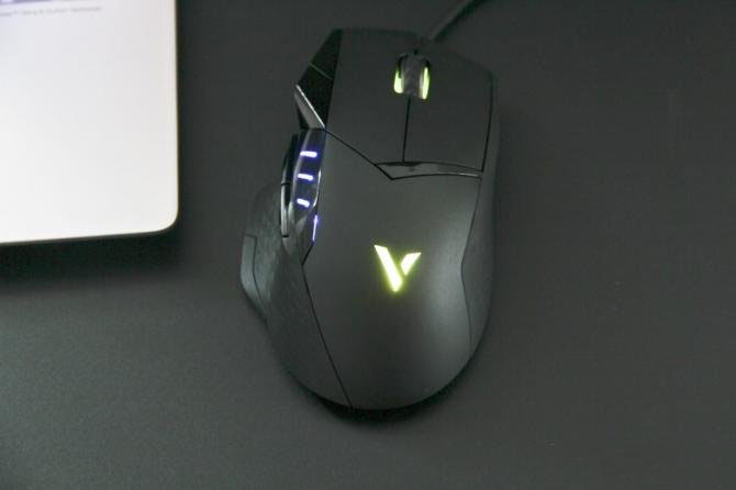 雷柏VT300游戲鼠標相比于VT900在原本顯示屏的位置取而代之的是三顆LED燈,我們可以通過這三顆指示燈了解鼠標運行的模式、DPI等信息。