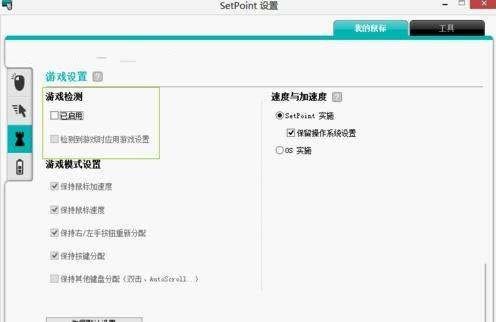 3、然后,如果是游戲玩家,想用這個無線鼠標玩游戲,可以進行游戲方面的設置,先啟用最上方的啟用游戲檢測,當進入游戲時,會自動啟用游戲設置,下方的游戲模式設置都是默認。