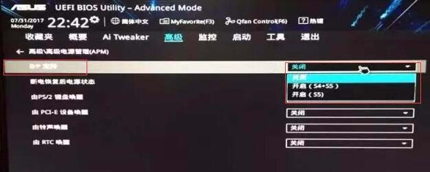 第一:【高級】->【高級電源管理】->【ErP支持】