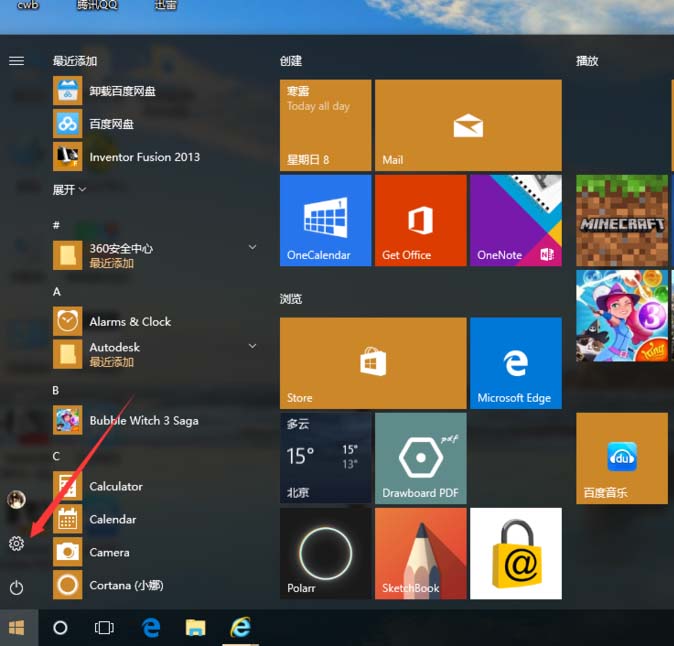 3、用觸摸板點擊開始菜單 按鈕,在開始菜單中單機設置(齒輪的圖標)