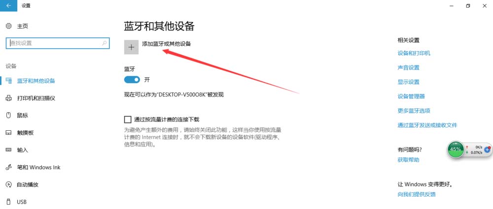 5、在彈出的界面中點擊添加藍牙或其他設備