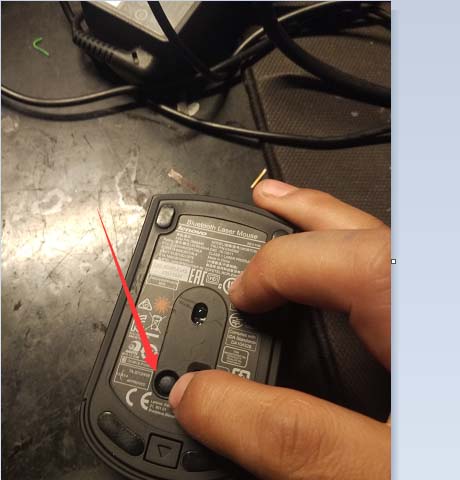 2、用手按下鼠標下部的小黑圓點,當鼠標的電源燈閃爍的時候松開按鈕,鼠標進入配對模式