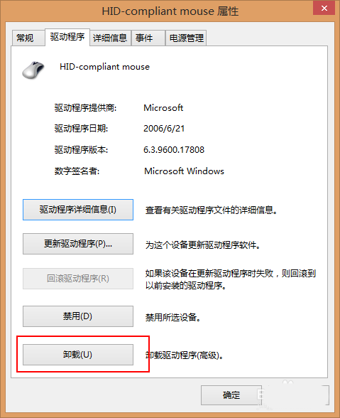 7、雙擊上述鼠標,進入設置,將驅動卸載,然后重啟電腦,系統會自動重新安裝鼠標驅動。