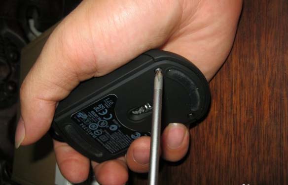 1、用螺絲刀把鼠標底部的螺絲拆下,然后把鼠標上面部分打開
