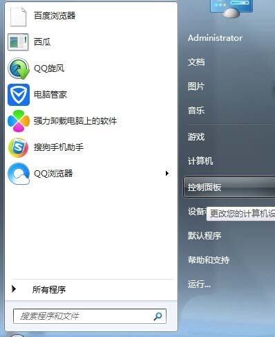 2、然后點擊電腦桌面左下角的WIN圖標開始按鈕,然后點擊右面的控制面板