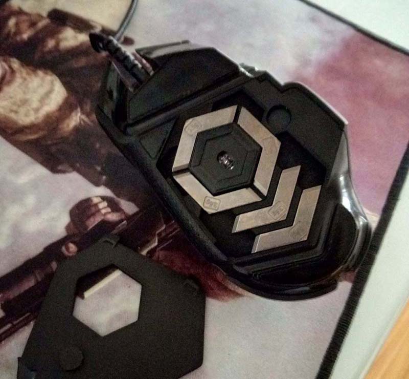 3、可調節重量一直是G502的特色,配備了五個3.6g的砝碼,可以自由配置,在游戲和辦公方面兩不誤。