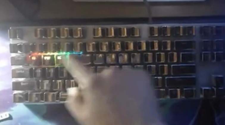 4、踏雪無痕效果,就是默認無背光,按一個鍵,那個鍵的背光就會亮起,等熄滅之后再按,就會換另一種顏色。按FN+DEL鍵,調節顏色;FN+方向上下,調節亮度