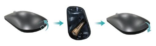 沿鼠標尾部標志打開上殼,按電池倉正負極的標志安裝一節AA電池(5號電池),合上上殼即可。