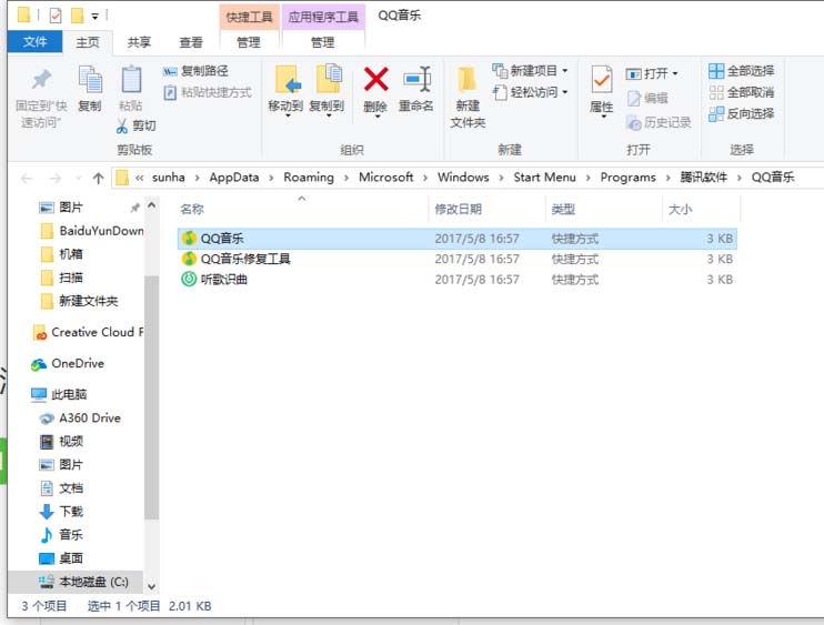1、在開始菜單中騰訊軟件文件夾中找到QQ音樂或是其他軟件