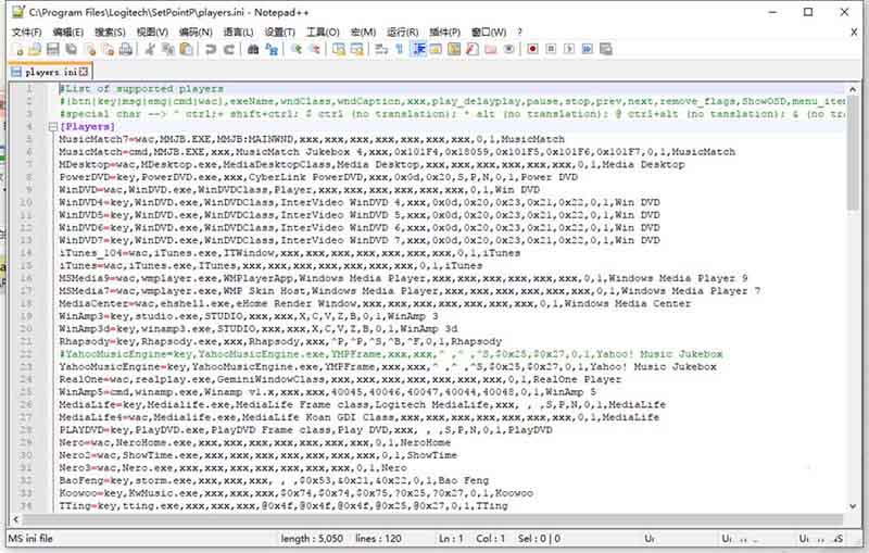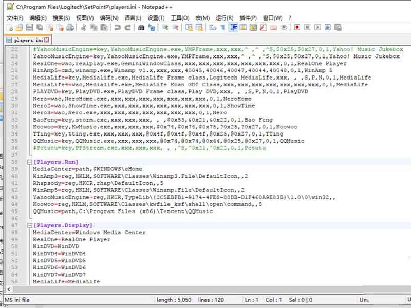 1、打開文件后下拉至[Players]列最后一行添加(QQMusic=key,QQMusic.exe,xxx,xxx,xxx,@0x74,@0x74,@0x44,@0x25,@0x27,0,1,QQMusic)