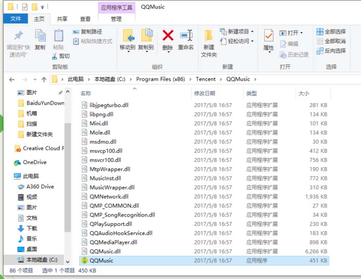 5、選中文件目錄按鍵盤Ctrl+C復(fù)制Ctrl+V替換到(QQMusic=path,C:/Program Files (x86)/Tencent/QQMusic)文件目錄位 以酷狗位例(QQMusic=path,C:/Program Files (x86)/KuGou/KGMusic/)