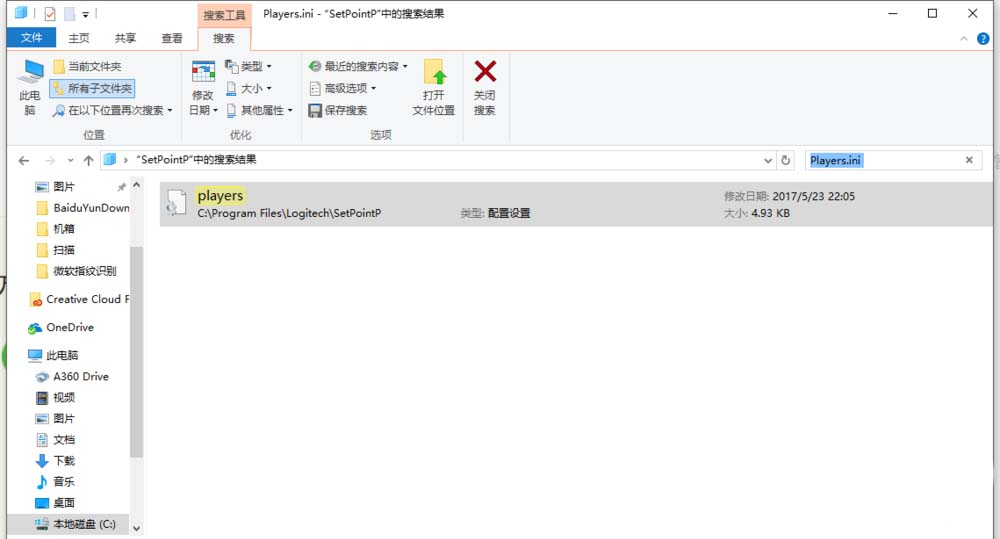 4、在右上角搜索框內(nèi)搜索Players.ini