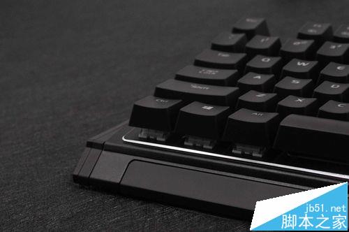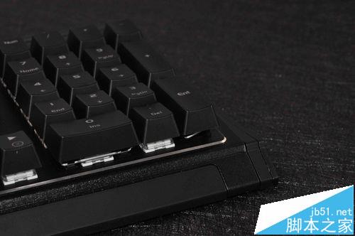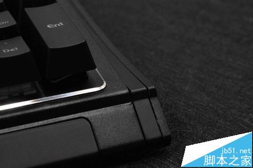 5、表面則采用了一些噴砂絲印等技術(shù)處理過,近拍的時候可以看出來,輪廓邊緣增加了高亮度的切邊裝飾讓整個鍵盤看起來很亮麗。