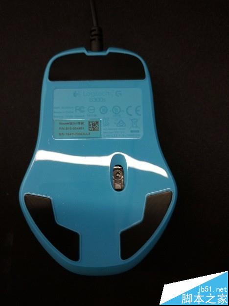 不同與鼠標(biāo)正面的質(zhì)感顏色,羅技G300S的底盤(pán)設(shè)計(jì)雖然簡(jiǎn)潔,但在色調(diào)上以藍(lán)色為主,另有3片大面積的黑色膠墊,對(duì)于鼠標(biāo)的移動(dòng)操作帶來(lái)的磨損能很好的保護(hù),中心部分則是產(chǎn)品的相關(guān)信息,整體顏色的跳躍性比較大。