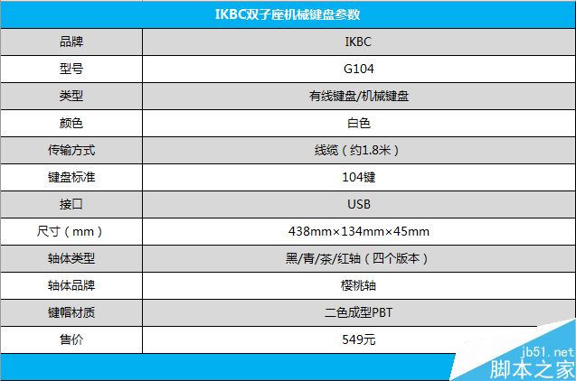 此外,新品在造型設(shè)計上保持不變,還是我們熟悉的IKBC簡約干練風格,有87和104鍵兩種大小布局,PBT材質(zhì)耐磨鍵帽,搭載的是CHERRY櫻桃鍵軸(黑、紅、茶、青軸),支持全無沖。