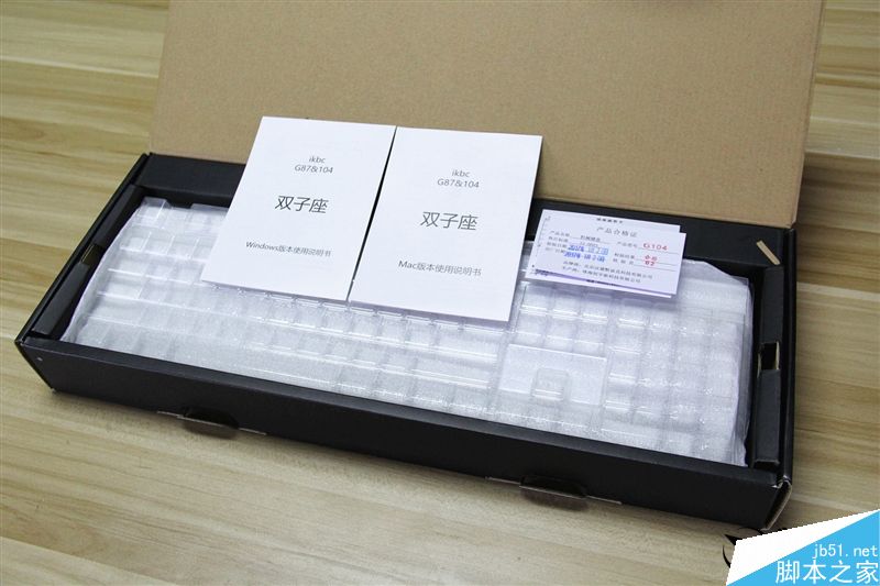 ↑↑↑打開包裝后,可以看到鍵盤主題套了一層白色軟塑袋外,還新增了透明的塑料防塵罩。這不僅避免快遞過程中的意外損傷可能,在日常閑置時也可罩在鍵盤上防止積灰。包裝清單包括Mac/Windows版本使用說明書、保修卡。