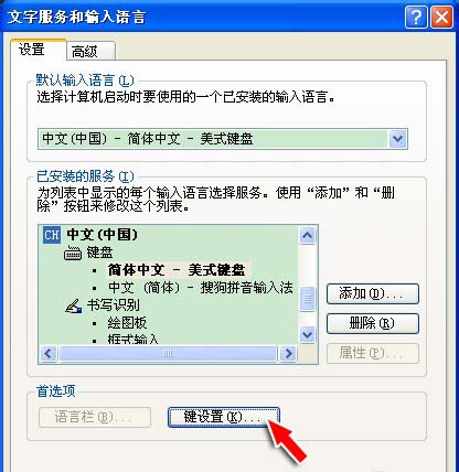 4、在出來的“文字服務和輸入語言”中,選擇“鍵設置”