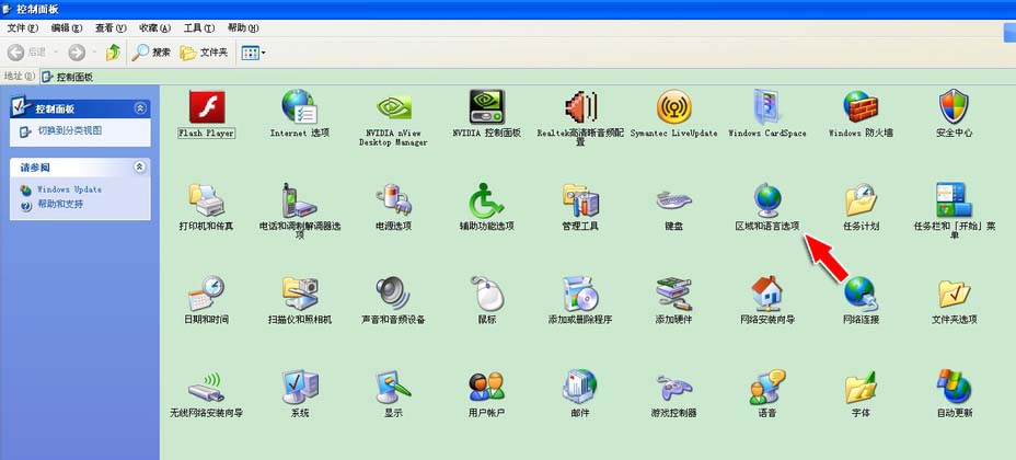 2、在“控制面板”中找到“區域和語言選項”,雙擊打開。