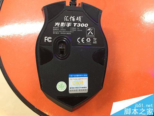 7、我們看下鼠標的底部,很多的產品檢查標志,還有就是鼠標的基本信息,我們也可看到整個五個角都是采用防滑設計。
