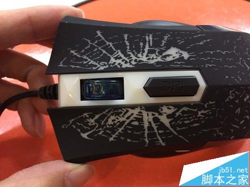 5、我們看這個正面的設計,左鍵和右鍵都往前面突出了一點這個設計是方便我們按鍵的,因為在游戲的過程中,鼠標脫離鍵是很麻煩的,中間的DPI鍵就是我們用于調節鼠標的速度。就是說我們越高,我們在鼠標墊移動一點點屏幕上移動很多。