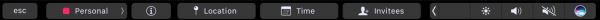 Touch Bar 的日歷會(huì)顯示時(shí)間線滑動(dòng)條,滑動(dòng)時(shí)間線便可以跳到新的日期。當(dāng)用戶選擇某個(gè)事件后,Touch Bar 會(huì)顯示一些快捷操作,比如為事件添加地點(diǎn),或者改變時(shí)間等。