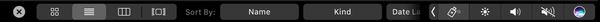 Touch Bar 中的 Finder 為用戶帶來了文件視圖和分類選項(xiàng)。Quick Look、分享和標(biāo)簽選項(xiàng)出現(xiàn)在中間,點(diǎn)擊標(biāo)記功能后,Touch Bar 會(huì)出現(xiàn)各種顏色的標(biāo)記選擇,用戶可以通過 Touch Bar 就可以增加或刪除標(biāo)記。點(diǎn)擊目錄視圖按鈕會(huì)出現(xiàn)一個(gè)新的分類選項(xiàng)界面;而選擇一個(gè)新的視圖模式后,F(xiàn)inder 的窗口就會(huì)出現(xiàn)相應(yīng)的變化。