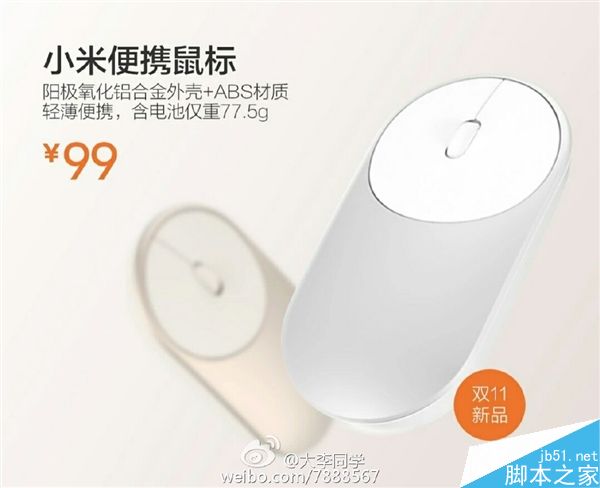 小米為雙11準(zhǔn)備的新品不少,繼紅米4、紅米4A之后,小米影業(yè)副總裁李明近日曝光了一款“小米便攜鼠標(biāo)”,雙11零點(diǎn)首發(fā),售價(jià)99元。