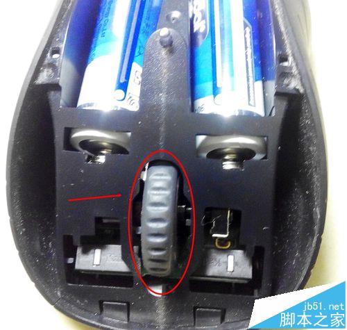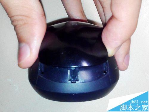 2、下一步就是打開鼠標(biāo)看內(nèi)部,看看滑輪到底怎么了,可是怎么開呢?小編找了很久但是沒有一個螺絲,決定按一下有一個標(biāo)有電池的地方試一下。