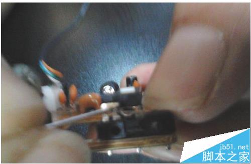 9、把銅片上的觸點露出來,輕輕摩擦掉表面被氧化的