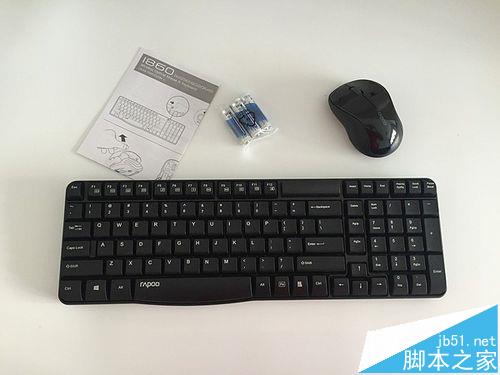 3、來看全家福,一張說明書兼三包書、三節5號電池、鼠標和無線鍵盤: